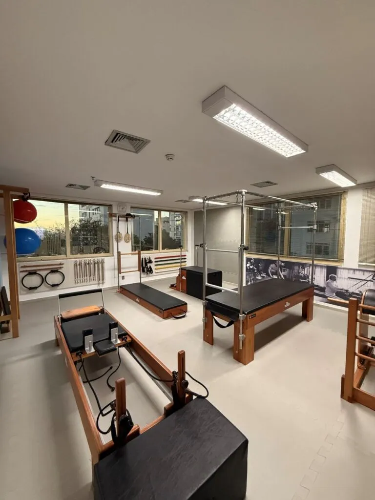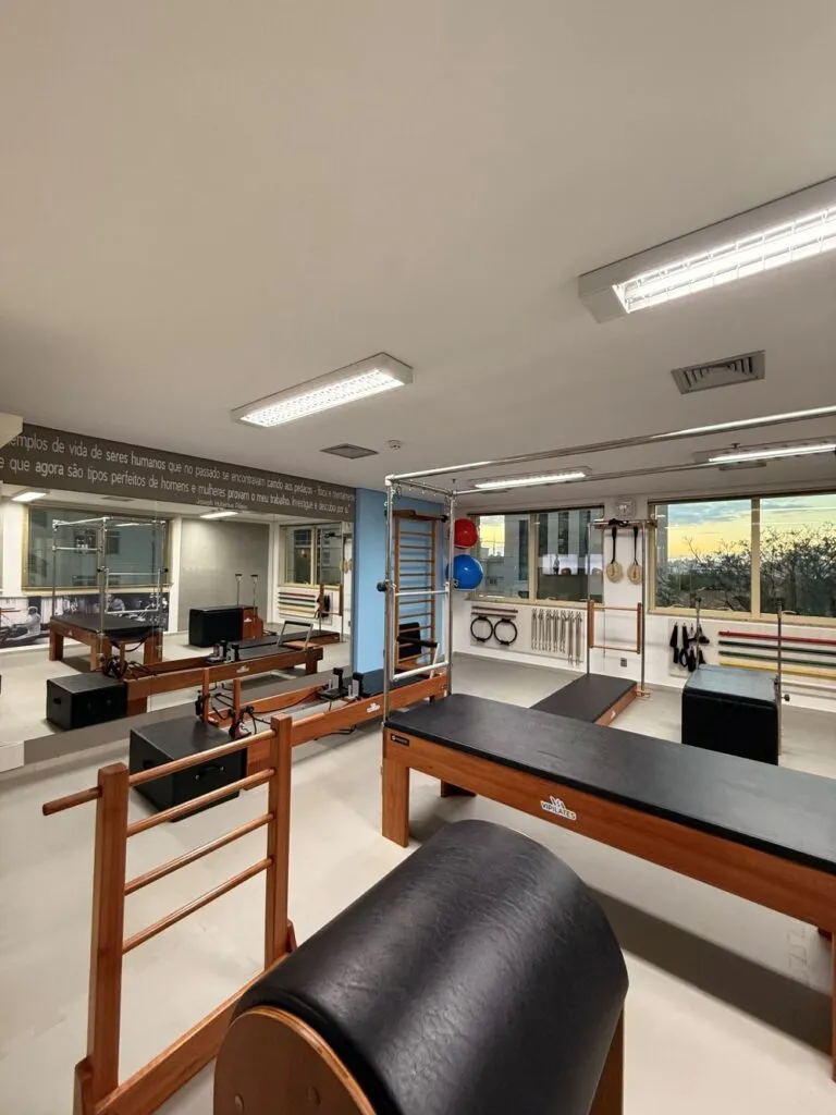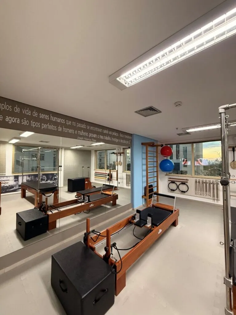 A aula experimental tem duração de 50 minutos e funciona como uma aula completa — ideal para conhecer o espaço, a metodologia e vivenciar o Pilates com acompanhamento próximo.